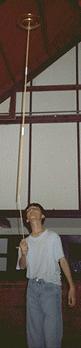 Like most "Albert" tricks, it involves doing something through the legs front to back - without lifting the feet. In this case the stick goes through the legs and catching a falling plate.
