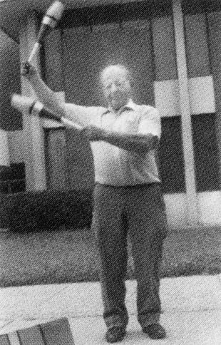 "I started juggling about 1944. I had been a good gymnast in college and qualified for the Olympics. But during the war gymnasium equipment wasn't available and I began to notice I was getting hurt. So I looked around for something I could do by myself or with others, indoors or out, at a high level or an easy level, and to a very old age. The only activity that met those qualifications was juggling.