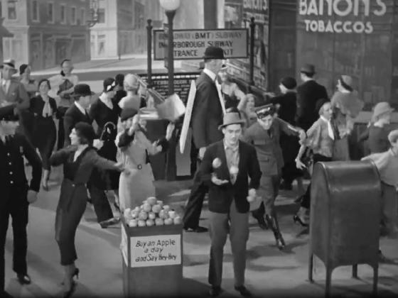 At 1:24:29, near the end of the movie, just as Ruby Keeler finishes singing the title song "42nd Street," a street peddler is seen juggling 3 apples for 7 seconds.