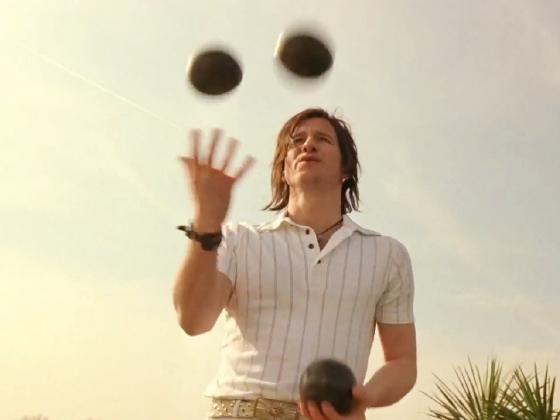 At 03:34, Paul Kaye, playing Cliff, juggles 3 balls for 1 second.