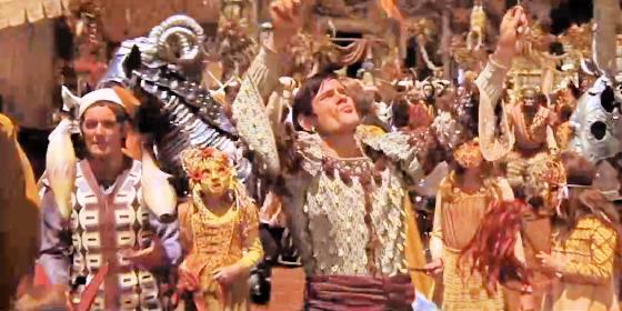 At 1:17:22, a man wearing a gorilla mask juggles 3 balls for 2 seconds,