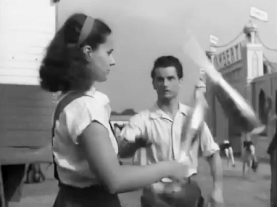 until a man walking by her intentionally knocks one down. 6 seconds