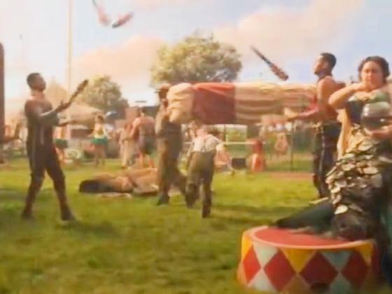 Then at 05:06, Tom Gaskin is seen, first walking on a rolling globe and