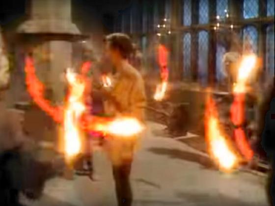 At 34:10, 3 ghosts juggle and pass torches around Peter MacNicol for about 20 seconds. The juggling was performed by The Mums, made up of Roy Johns, Albie Selznick, and Nathan Stein.