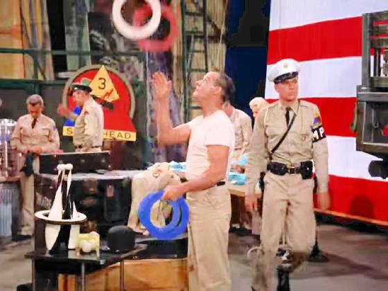 At 1:38:06, Hugh Manning is warming up backstage juggling 3 rings,