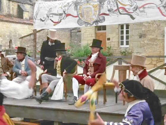 At 35:15, Javert is at a street fair in France where Valjean has become mayor, and a performer juggles 3 clubs for 12 seconds, but is far in the background and mostly obscured and difficult to see.