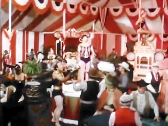 At 33:18, a 3 club juggler and a 3 ball juggler are seen in a circus themed casino many times over a 2 minute period.