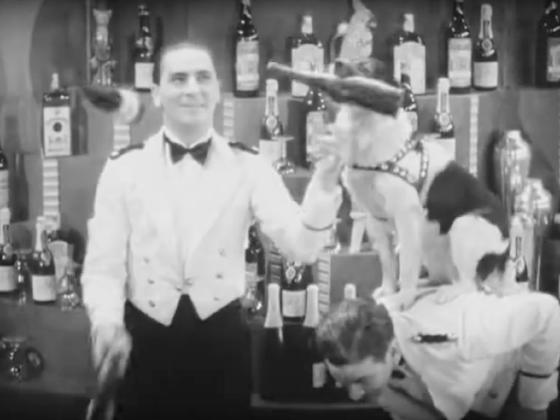 At 17:18 and 17:30, we can also see the bartender juggling the 3 wine bottles in the background, behind the line of chorus girls, but without the dog. In the second shot, a second bartender is also seen in the background, also juggling 3 bottles.