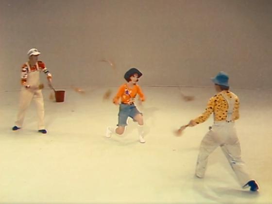 At 0:29:26, there is a wonderful 5 minute juggling act with 2 men and a woman, as painters juggling paint brushes as clubs.