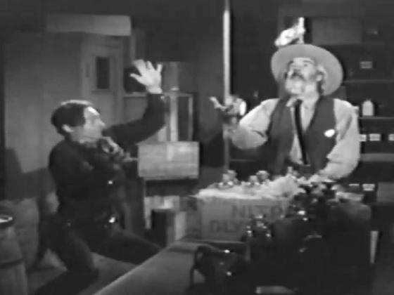 At 00:45, in the opening scene of the movie, George "Gabby" Hayes