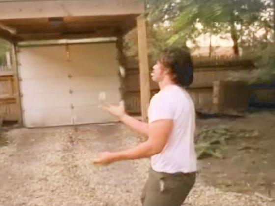 played by Ben Redgrave, is in the back yard and awkwardly juggles 3