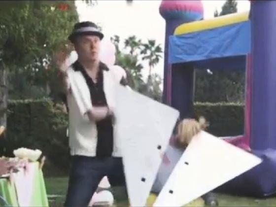At 1:21:44, as Sarah is running away from the snobby girls, she bumps into the juggler, played by Bill Rude, who was entertaining at the party, ending his juggling as it knocks him down.
